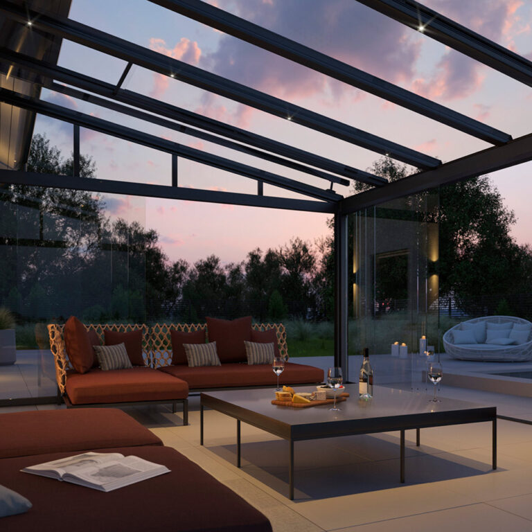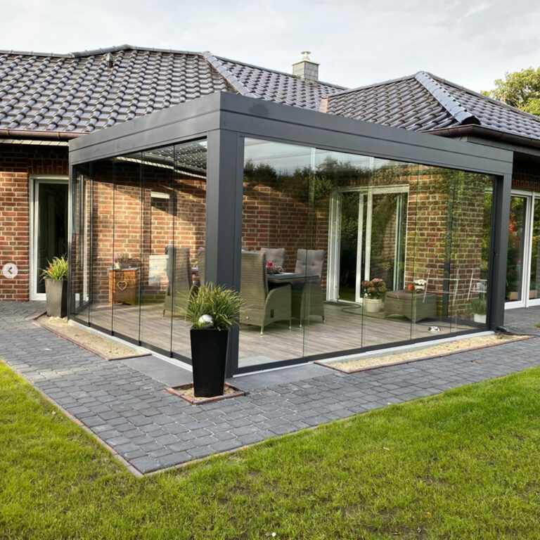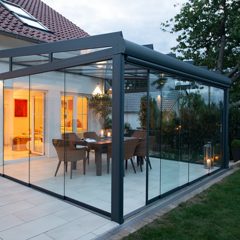 Eine leichte Glas-Aluminium-Konstruktion bietet Ihnen Schutz vor Wind, Regen und abendlicher Frische. Das gibt Ihnen die Möglichkeit 90% des Jahres draußen, in Ihrem Sommergarten zu verbringen. Genießen Sie bereits im Frühling oder noch im späten Herbst die Sonnenstrahlen.