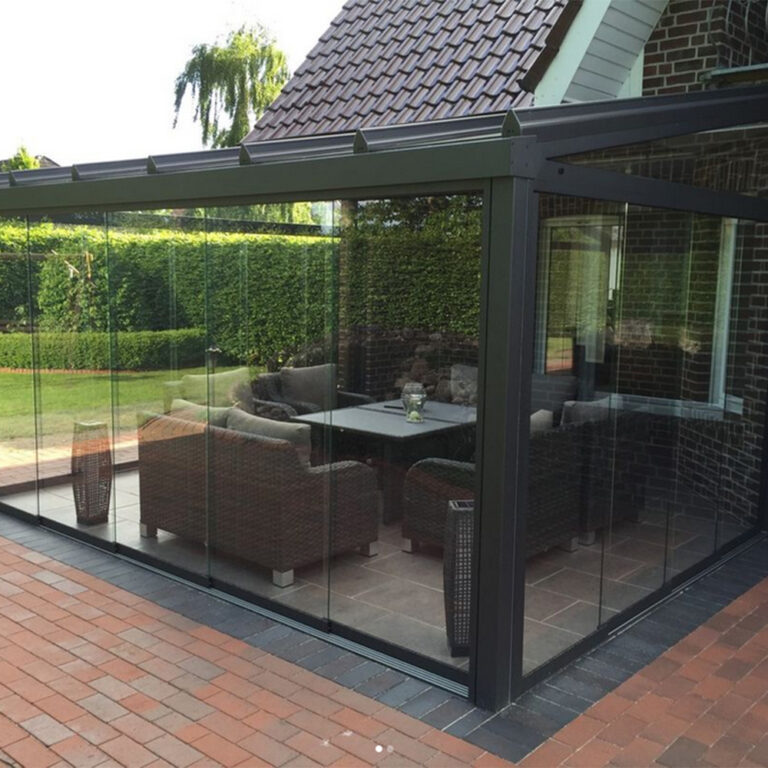 Sobald die Temperaturen draußen steigen und es wieder richtig heiß wird, schieben Sie nach Bedarf einfach die flexiblen gläsernen Seitenteile beiseite und funktionieren Ihren Sommergarten zu einer vollwertigen Terrassenüberdachung um.