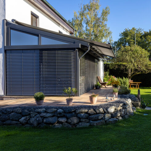 Bei der Auswahl von Farben und Formen sind Ihnen keine Grenzen gesetzt. Auch Sonderformen sind mit dem universell ausgelegten Profilsystem leicht machbar. Die Profile aus Aluminium sind pflegeleicht und absolut witterungsbeständig. So macht Ihre Terrasse immer einen guten Eindruck.